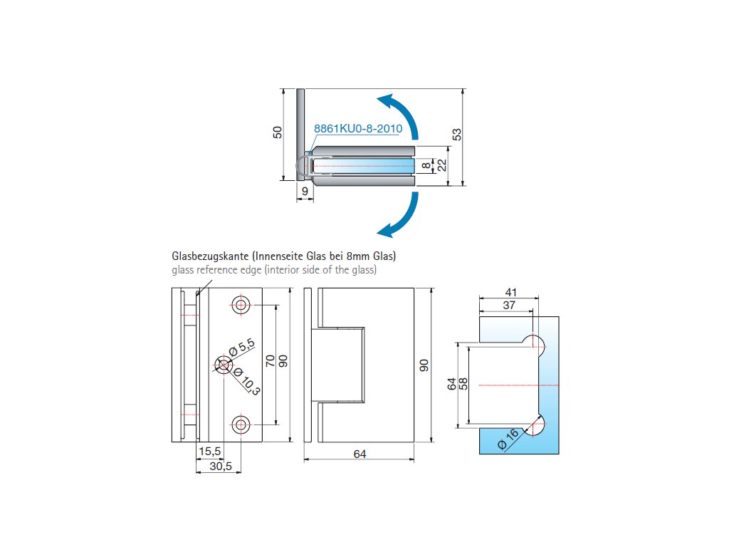 Pant na skleněné sprchové dveře s nastavitelnou nulovou polohou.
